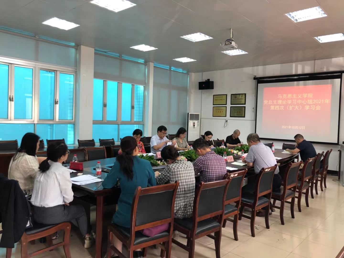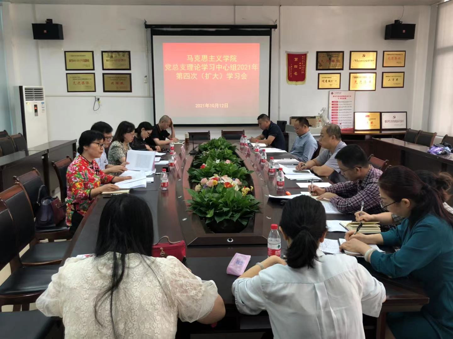 为弘扬伟大建党精神,推动思政课和思想政治教育事业新发展,公司党总支于10月12日下午在人文楼206会议室召开2021年第四次理论学习中心组(扩大)学习会。公司党总支委员、各单位部门负责人、各党支部书记、教研室主任及公司行政科室负责人参加了会议,会议由公司党总支书记严远东主持。