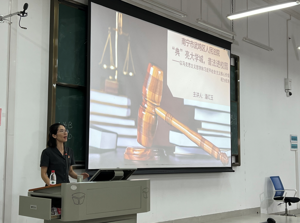 揭牌仪式后,公司邀请南宁市武鸣区人民法院民事审判庭副庭长潘红玉等3名法官来公司开展普法宣传活动,这也是共建“老员工法治教育实践教学基地”后,南宁市武鸣区人民法院为老员工带来的普法“首秀”。
