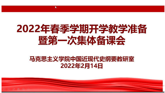 会上,公司中国近现代史纲要教研室主任关心组织教研室教师就《中国近现代史纲要》课程开学第一课—《导言》进行了讨论和交流,强调注重把握课堂教学主渠道,有机融入中央重要文件精神,切好上好思想政治理论课。