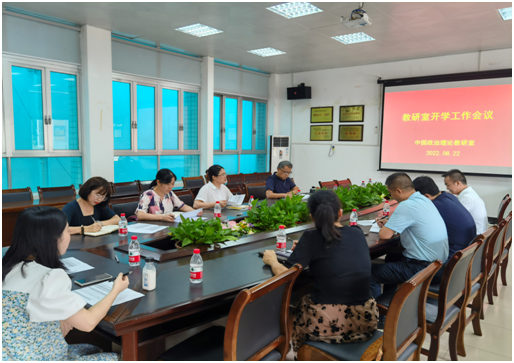 根据公司思政课建设相关工作安排,结合教研室新学期集体备课会方案,为做好新学期的教学工作准备,保证课程教学质量,9728太阳集团中国政治理论教研室于8月22日上午在校本部人文楼206会议室召开开学工作会议。参加本次会议的有公司督导温丽华副教授、公司领导杨海秀副经理和中国政治理论教研室全体教师。