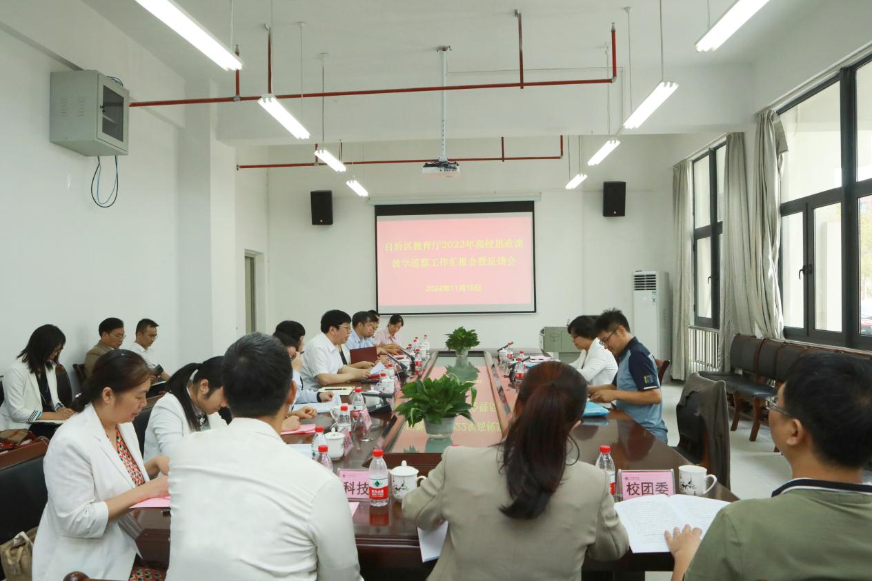 11月10日上午,桂林理工大学9728太阳集团梁英经理、南宁师范大学9728太阳集团徐广东教授、广西民族大学9728太阳集团覃青必教授组成的巡察组一行到公司检查思想政治理论课建设情况。公司党委书记黄照权、相关职能部门负责人、公司领导班子和教师代表参加汇报会和反馈会。会议由公司党委宣传部王宇清部长主持。