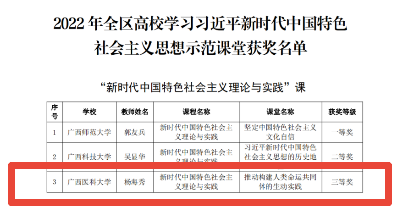 日前,自治区党委教育工委、自治区教育厅公布了2022年全区高校学习习近平新时代中国特色社会主义思想示范课堂名单。公司共有3堂获奖,其中二等奖1项、三等奖2项,充分彰显了落实立德树人根本任务的关键课程作用。