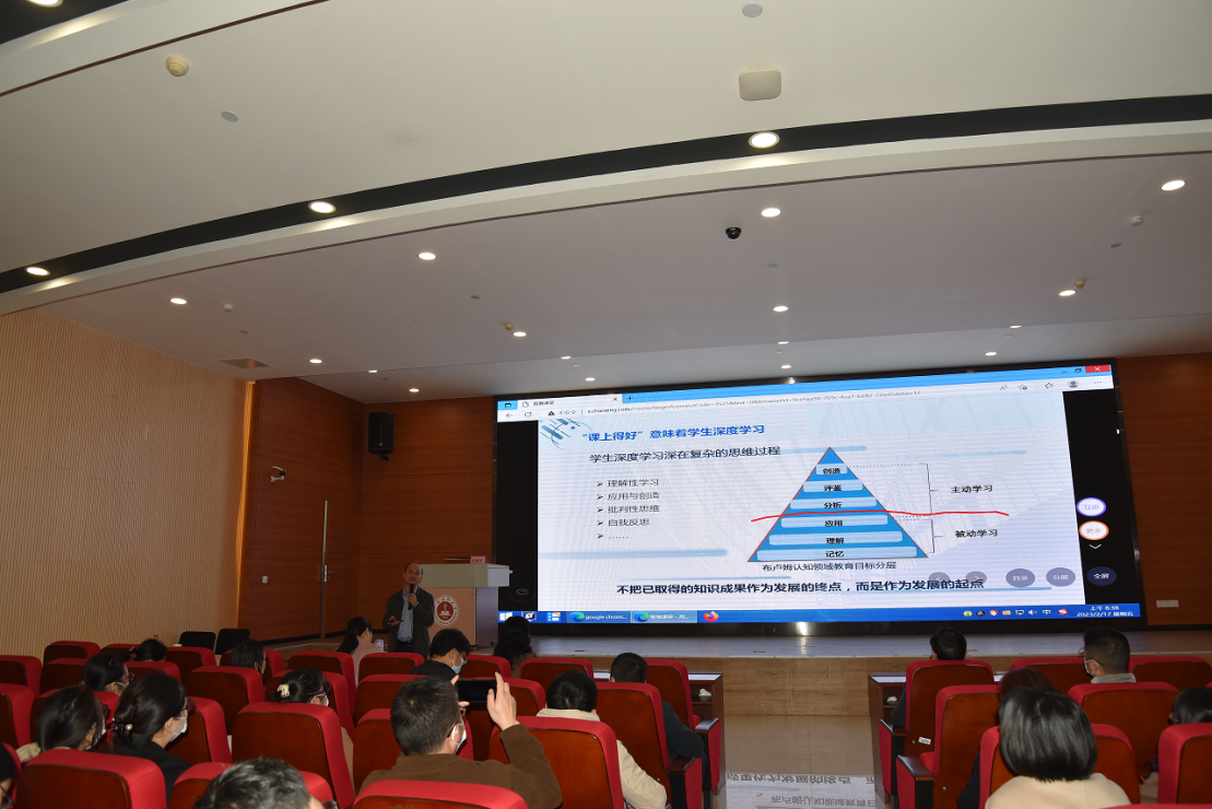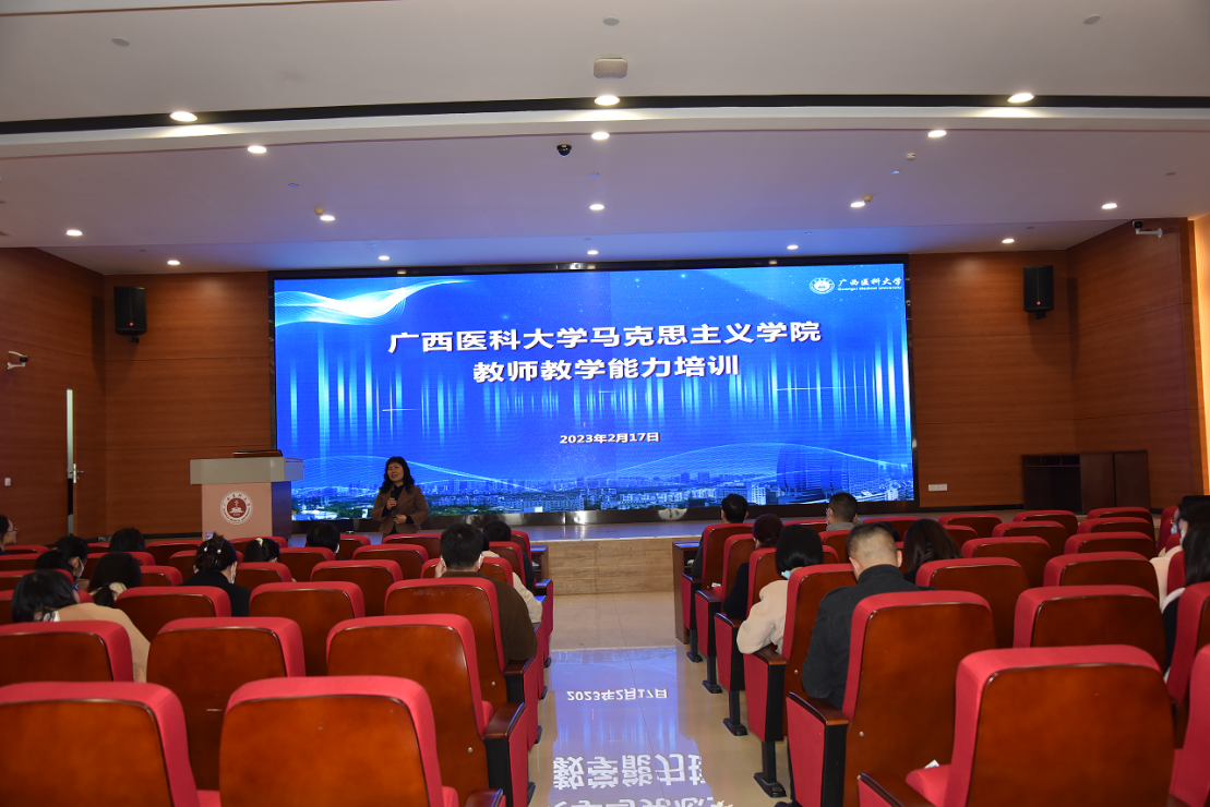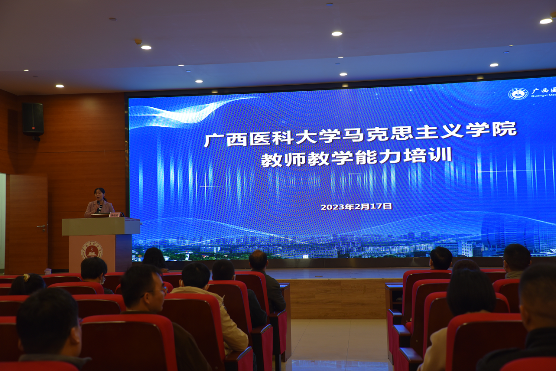 新学期伊始,为进一步提升思政课教学质量,2023年2月17日上午,9728太阳集团邀请公司教务处处长刘登宇到卓越楼21楼报告厅开展教师教学能力提升培训。培训会由公司副经理杨海秀主持,全体思政课教师参加。