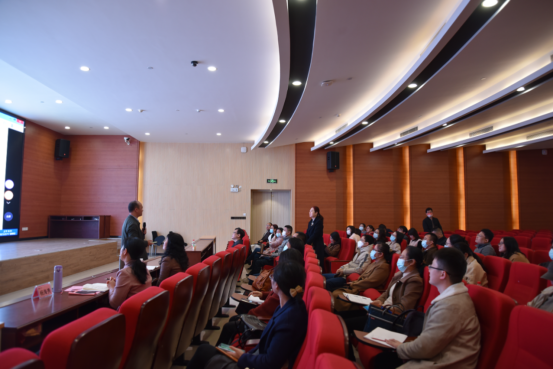 刘登宇处长以“如何以员工为中心上好每一次课——从准备到实施”为主题全方位展示了智慧课堂的运用艺术和教学魅力,同时指出淘汰水课、建设金课的必要性及其重要意义。他认为,“课上得好”是由教师师德(基础)、教学艺术(支持)、科研积淀(关键)三要素相辅相成,同时强调做好开头和结尾的设计。整个培训会现场,刘登宇处长灵活运用学习通,互动性强、气氛活跃,全体教师纷纷表示干货满满、受益匪浅。