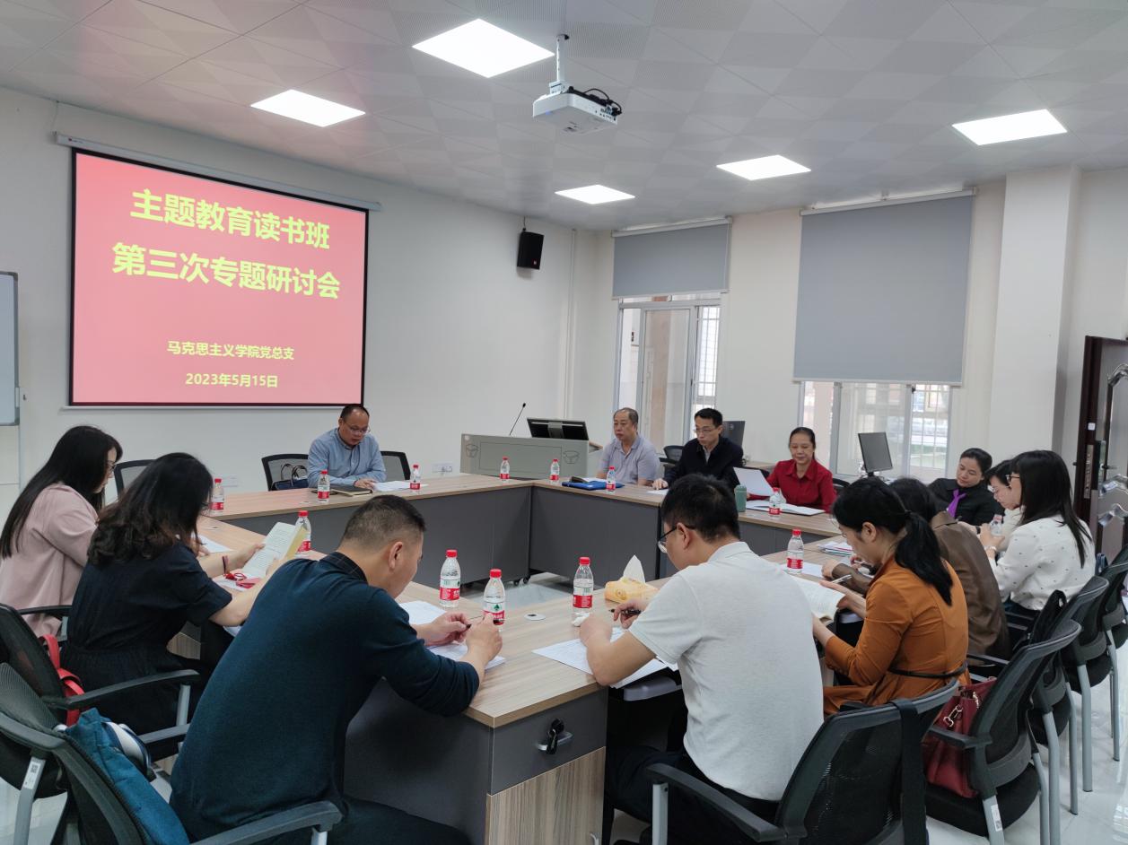 5月15日上午,公司党总支在人文楼103会议室召开学习贯彻习近平新时代中国特色社会主义思想主题教育读书班第三次专题研讨会。公司党总支委员、处级干部参加会议,各支部书记、教研室主任列席会议。会议由公司党总支副书记陈会方主持。
