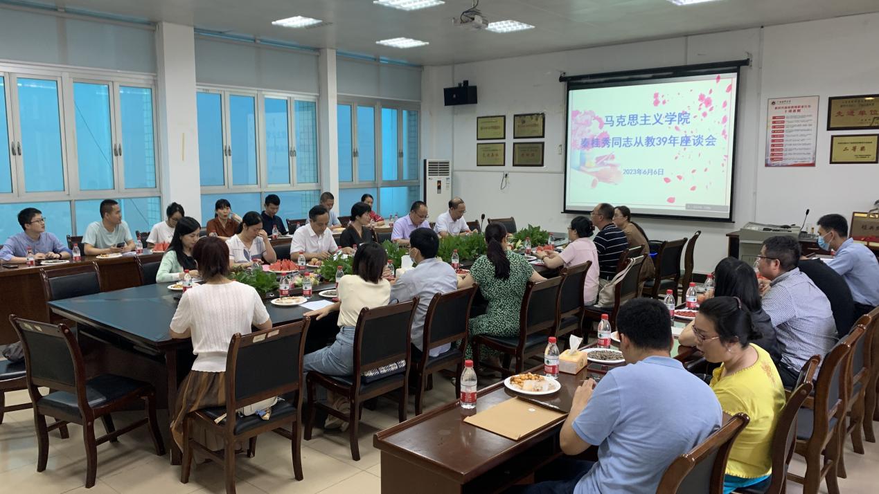 6月6日下午,校本部人文楼206会议室温馨祥和,9728太阳集团以一场特别的座谈会,向光荣退休的秦桂秀同志送上真挚的祝福和崇高的敬意。人文社会科学公司经理王前强;9728太阳集团副经理陈飞、杨海秀;秦桂秀从教公司的教师代表和指导过的员工代表参加了座谈会。座谈会由公司党总支副书记陈会方主持。