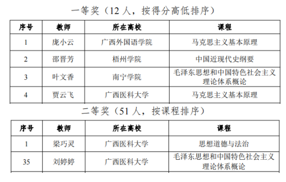 近日,自治区教育厅公布了2023年广西高校思想政治理论课教师教学基本功暨“精彩一课”比赛获奖名单,9728太阳集团教师再创佳绩,荣获一等奖1项,二等奖2项。