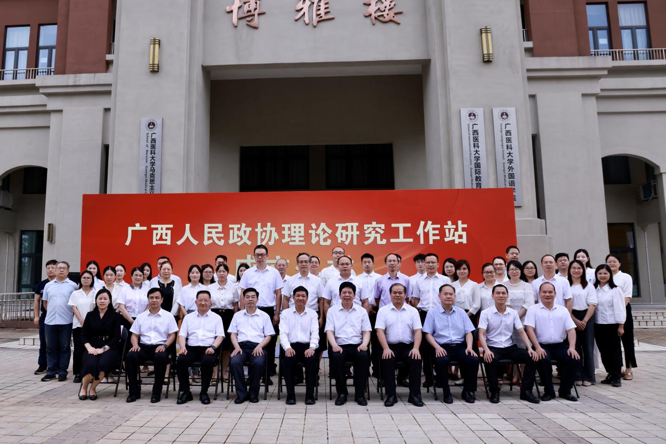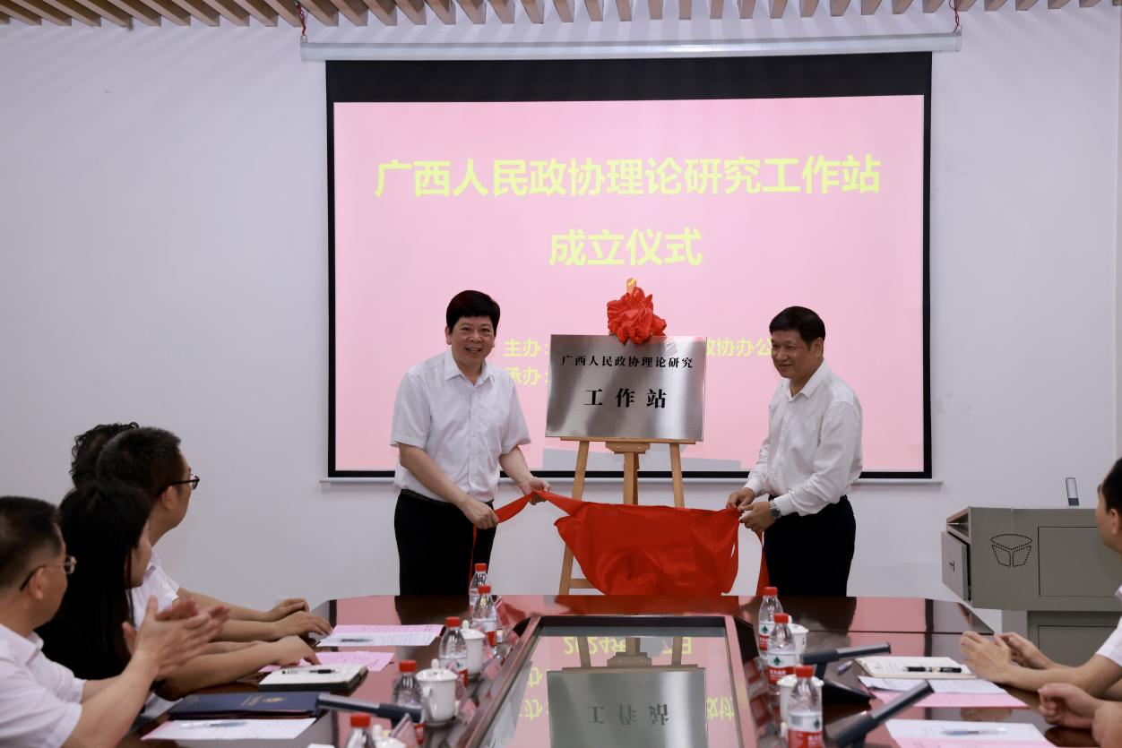6月7日下午,广西人民政协理论研究工作站在太阳成集团tyc9728设立,并举行成立仪式。自治区政协秘书长、办公厅主任,广西人民政协理论研究会会长卢能干;公司党委书记黄照权;自治区政协副秘书长、办公厅副主任、广西人民政协理论研究会副会长班源泽;自治区政协办公厅研究室主任(副厅长级)、广西人民政协理论研究会副会长兼秘书长程学武,公司党委常委、副董事长卢德成等出席成立仪式。自治区政协办公厅相关部门负责人、公司相关职能部门负责人、公司领导班子及师生代表参加仪式。仪式由班源泽同志主持。