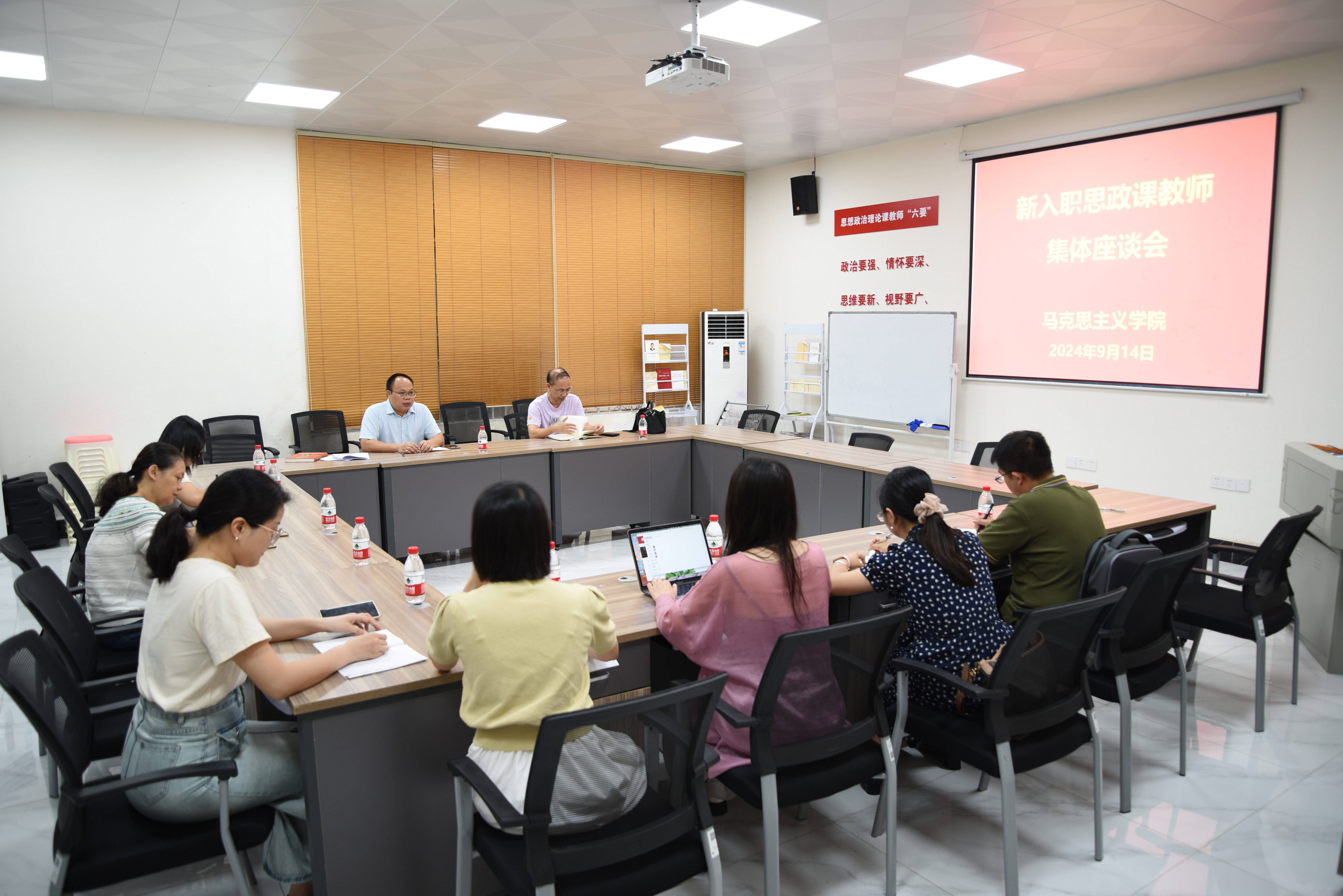 9月14日上午,9728太阳集团在人文楼103会议室召开新入职思政课教师座谈会。公司党委书记陈会方、公司副经理陈飞、院办和教研科负责人以及2024年新入职思政课教师参加了座谈会。会议由陈会方主持。