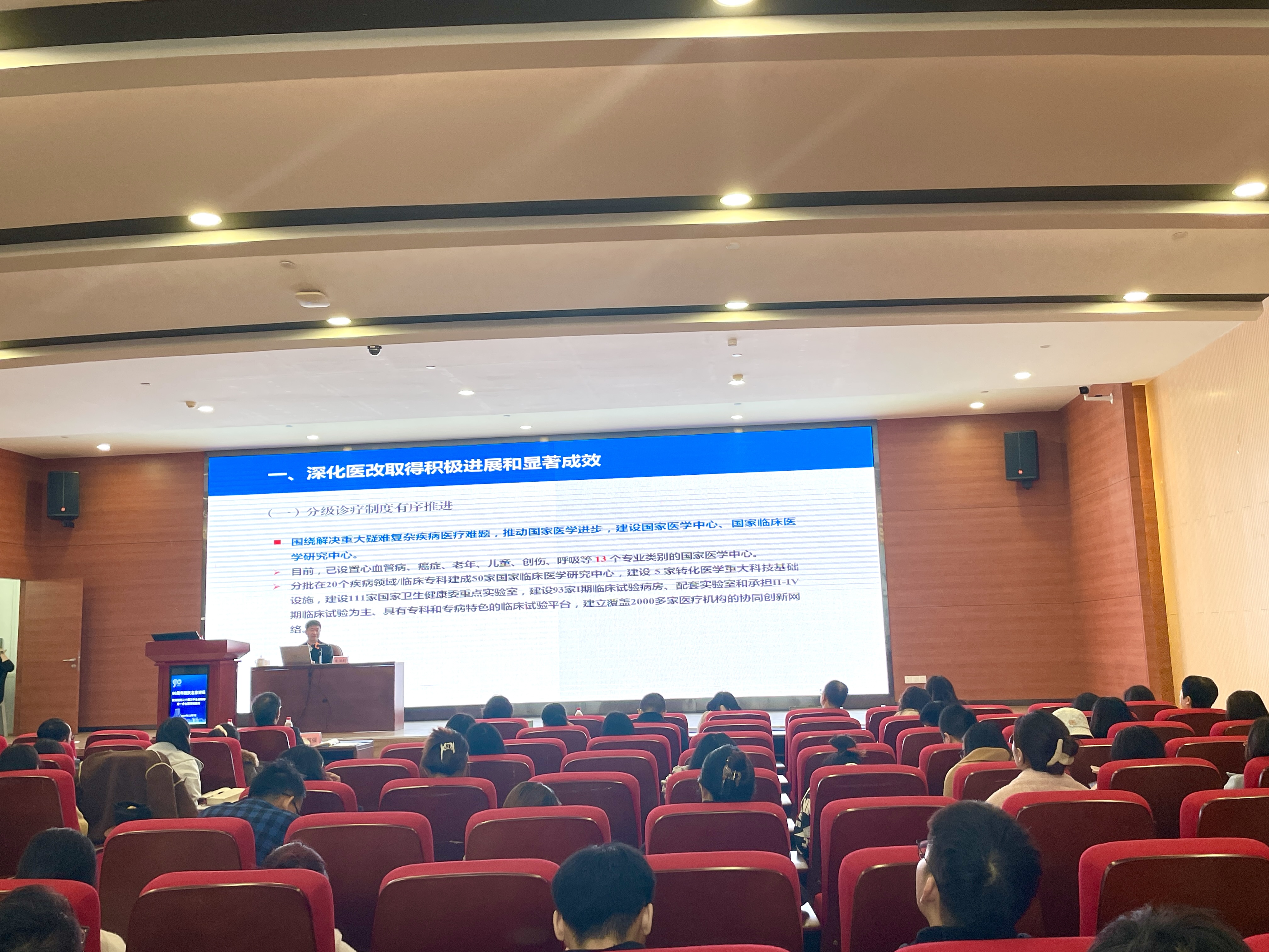 随后,朱洪彪做了题为《贯彻党的二十届三中全会精神,进一步全面深化医药卫生体制改革》的主旨报告。朱洪彪以时间为脉络,系统梳理了我国医药卫生体制改革的发展历程,全方位展示了我国深化医改取得的积极进展和显著成效,围绕党的二十届三中全会对深化医改作出的重大部署进行深入剖析,为与会师生带来了一场精彩的学术盛宴,极大地激发了现场听众对于医药卫生体制改革的浓厚兴趣与研究热情。