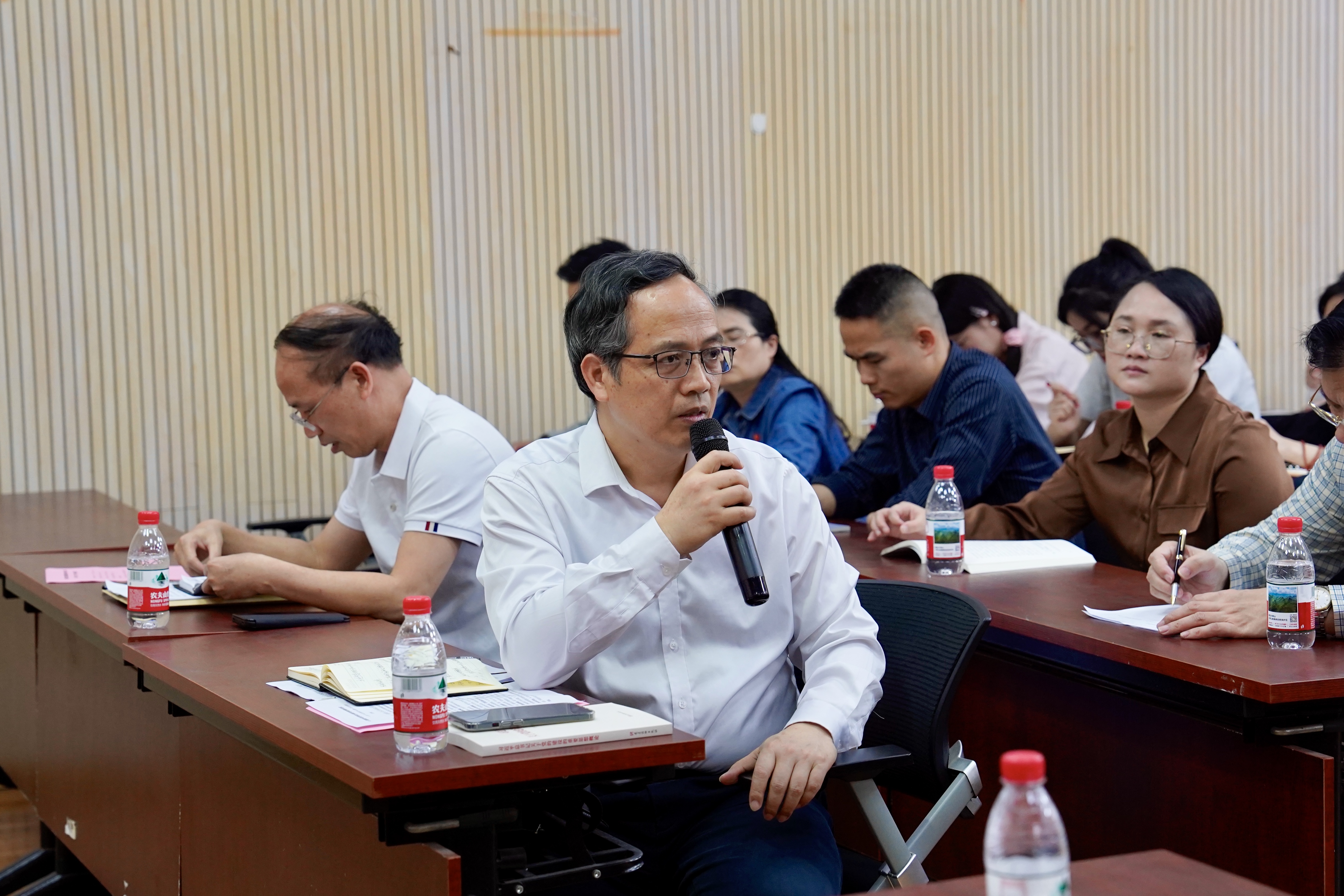在交流研讨环节,公司党委委员王前强、陈飞、杨海秀分别结合学习主题和工作实际作交流发言,从AI 赋能提升高校思想政治课教学效果的策略与路径、两会精神热点解读等方面谈学习收获和体会。